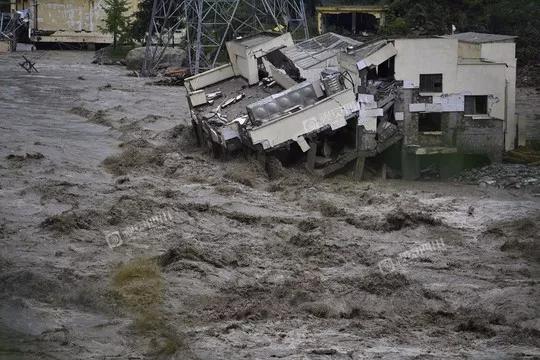 此外,卧龙镇部分民房被洪水泥石流淹没,镇污水处理厂被山洪泥石流淹没。