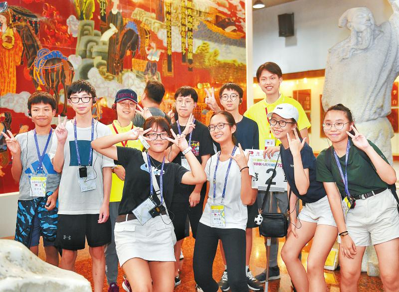 8月24日,参加交流活动的香港青年在成都杜甫草堂合影。新华社记者刘坤摄