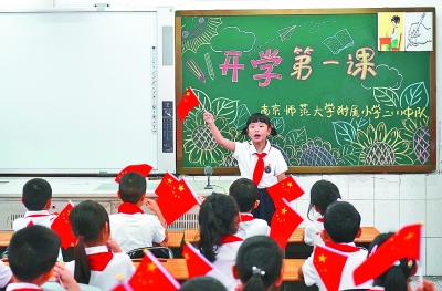9月2日,南京师范大学附属小学的学生在开学第一课上合唱《歌唱祖国》。新华社记者 季春鹏摄