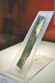 三星堆发现九十周年纪念特展中展出的祭山图玉璋。