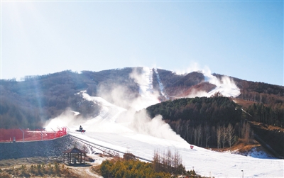 内蒙古赤峰市喀喇沁旗美林谷滑雪场在进行人工造雪。新华社发