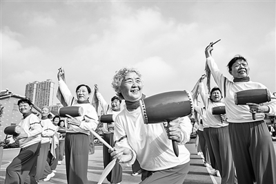 银发俏影 舞动夕阳 江苏省海安市有一群老年人自发组成的舞蹈队,几乎每天清晨都会认真排练节目,还经常给当地群众进行义务演出。图为老年舞蹈队正在排练海安花鼓。翟慧勇 摄/光明图片