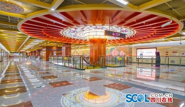 地铁5号线一二期贯通成都南北,北起新都区,南至天府新区,线路全长49.016公里,共设车站41座,其中地下站36座,高架站5座,换乘站13座,车辆段1座,停车场2座。5号线是中西部地区首条采用“8A”车辆编组的地铁线路,大幅提升了5号线运量,对缓解成都南北向的客运压力具有重要意义。线路车站装修以“芙蓉锦绘”为文化主题,普通标准站27座、文化艺术站9座、重点艺术站5座,分别为皇花园站、青羊宫站、抚琴站、锦城大道和二江寺站。