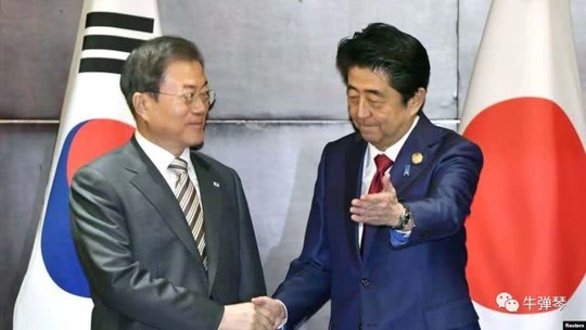 有朋友算了一下,这还是两人15个月来首次正式会晤。因为在二战劳工赔偿上闹翻了,安倍对韩国制裁,今年夏天日本办G20,安倍甚至都没和文在寅会谈;之前泰国东盟峰会,两人也就闲聊了几句,也不是正式会谈。