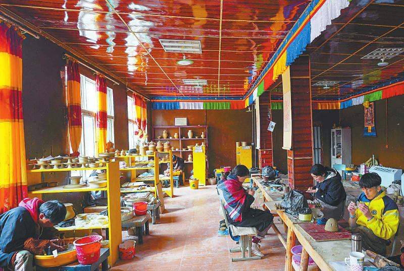 壤塘县近年来大力推动文化扶贫,按照“非遗+扶贫”思路,采取“政府扶持、传承人自主创办”方式,鼓励扶持传承人积极创办传习所,每年投入100万元资金用于非遗传习所建设。目前该县已建立传习所26个,涵盖藏陶、藏香、藏茶、藏药、唐卡、石刻、陶艺等非遗文化项目。如今,该县从事非遗文化生产性保护工作近两千人,很多快被遗忘的民间艺术又重新得到恢复,焕发出新的生命力。本报记者 尹钢 摄影报道