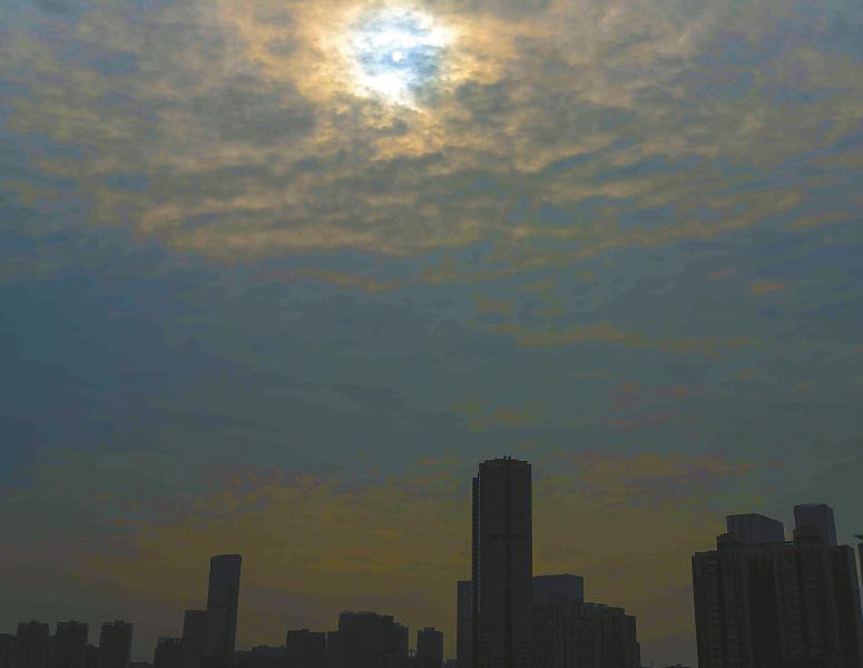利用相机内置模式,借用薄薄的云层,通过二次曝光,在绵阳拍摄到的日偏食。王勇摄(视觉四川)