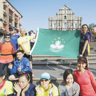 12月20日,人们在澳门地标大三巴牌坊前留影。新华社记者 王 申摄