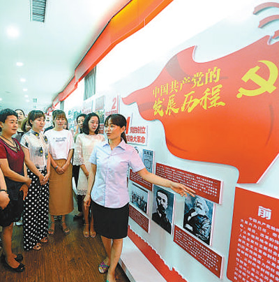河南省漯河市源汇区纪委监委组织纪检监察干部到八一路社区党史主题教育馆参观学习。尤亚辉摄(人民视觉)
