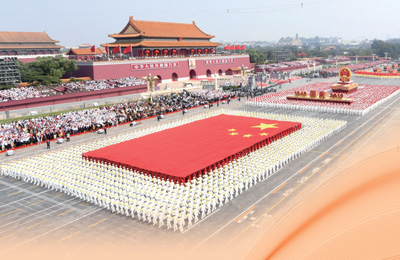 10月1日上午,庆祝中华人民共和国成立70周年大会在北京天安门广场隆重举行,20余万军民以盛大的阅兵仪式和群众游行欢庆新中国70华诞。中共中央总书记、国家主席、中央军委主席习近平发表重要讲话并检阅受阅部队。此外还举办了一系列庆典活动,包括授予42人国家勋章、国家荣誉称号,在北京天安门广场举行群众联欢活动等。新中国成立70周年庆祝活动激发了全国各族人民的爱国情、强国志,汇聚起同心共筑中国梦的磅礴力量。