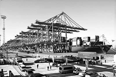 青岛港全自动化码头(二期)投产运营。新华社发
