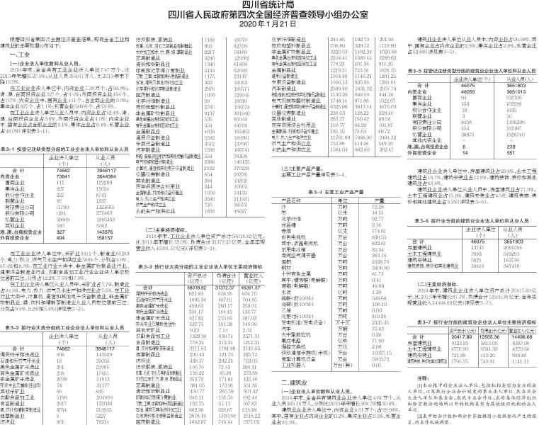 四川省第四次全国经济普查公报(第三号) ——第二产业基本情况 作者:四川省统计局 来源:20200123四川日报 发布时间:2020-01-23 10:31:59 浏览次数: 次 【字体:小 大】 来源: 20200123四川日报 终审:张亚 分享到: 关闭本页 【打印正文】