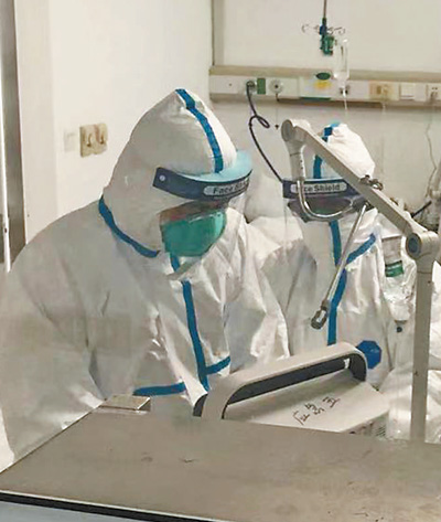 华中科技大学附属协和医院是收治首批疑似病例的医院之一。58岁的急诊科主任张劲农是首批接触疑似病例的专家之一,也是首批被感染的医护人员之一。发现疫情以来,张劲农始终坚守在发热门诊,高强度工作长达半个月。极度的疲劳以及高频次的密切接触,导致他出现发烧畏寒、咽痛等症状,随即被确诊为新型冠状病毒感染。张劲农说,在家隔离治疗过程中,他既是病人又是医生,这为临床治疗提供了极为宝贵的经验。他当时虽然进行了较严密的防护,但没做眼部防护。首批医生感染后,包括护目镜在内的最严格防护装备,已成为一线医生的标配。