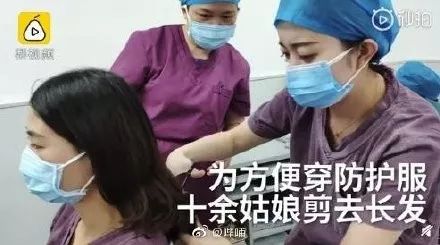 十余位姑娘为了穿防护服更方便,毅然自己剪去长发。