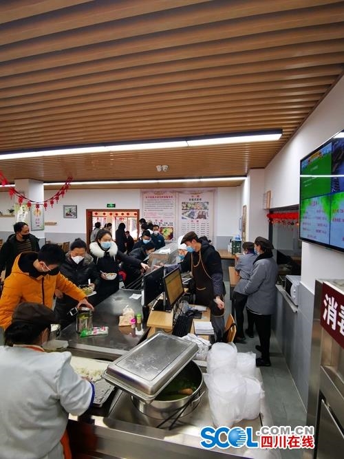 西红柿炒蛋、清炒凤尾……上午11点30分,一阵清香从楼下食堂飘出。干部们陆陆续续前往食堂就餐。相比节前,开餐时间提前了半个小时。