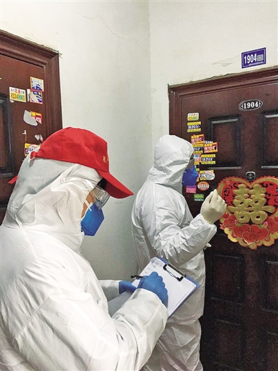 武汉天兴花园社区工作人员正在做排查。本报记者 章正摄