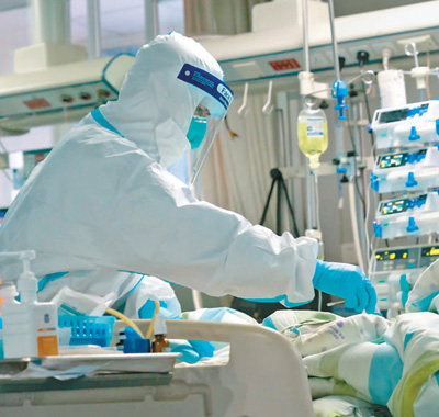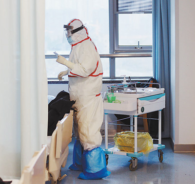 医护人员在武汉大学中南医院病房内工作。新华社发