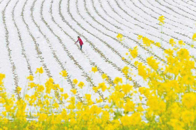 2月21日,南充市高坪区青居镇,农户们正在田间进行农业生产。周汉兵摄(视觉四川)