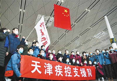 疫情防控是一项系统工程,只有加强党中央集中统一领导,全国一盘棋,统筹兼顾、协调联动,才能打赢这场疫情防控的总体战。图为天津市对口支援湖北省恩施土家族苗族自治州的支援队从天津滨海国际机场启程。新华社发