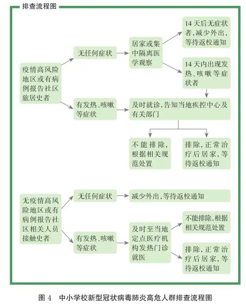 开学(园)后开展晨午(晚)检,落实报告制度;禁止校园外无关人员进入,不组织大型集体活动,错时错峰就餐。对外地返校返园师生员工进行全面排查,对来自中风险地区的师生员工,一律严格实行14天居家隔离医学观察,来自高风险地区的师生员工禁止返岗返校返园。对有发热、干咳、气促、呼吸道症状的师生员工,及时上报并配合核查排查。