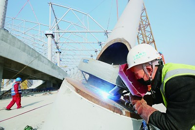 俯瞰成都天府国际机场航站楼主体工程。资料图片
