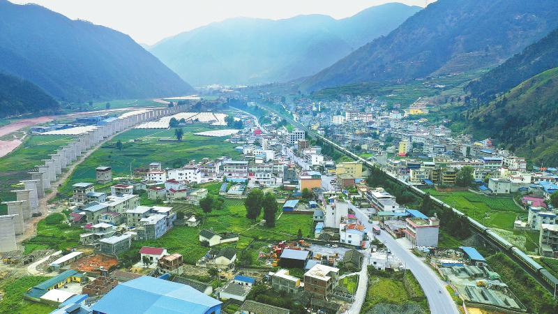 一辆列车行驶在成昆铁路四川省凉山州喜德县境内,旁边就是正在建设中的新成昆铁路(无人机照片,6月21日摄)。成昆铁路1958年启动建设,1970年7月1日建成通车,创造了世界铁路建设史上的奇迹。成昆铁路建成通车50年来,通过电气化、扩能改造等方式不断提升、提速、跨越。新成昆铁路2013年动工,目前,昆明至攀枝花米易段已通车,峨眉至米易段正在加紧建设。 新华社记者 王曦 摄