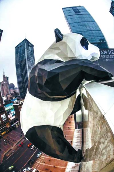 “在熊猫屁股下面等嘛。”这是不少成都人下班后默契的“约定暗号”。位于锦江区春熙路旁的IFS(成都国际金融中心),有一只“熊猫”总是没法爬上楼顶,后面两只爪子和屁股掉在半空中,前面两只爪子拼命拉住顶楼边缘。每到夜晚,华灯初上,它的屁股下面车水马龙,人群熙来攘往。