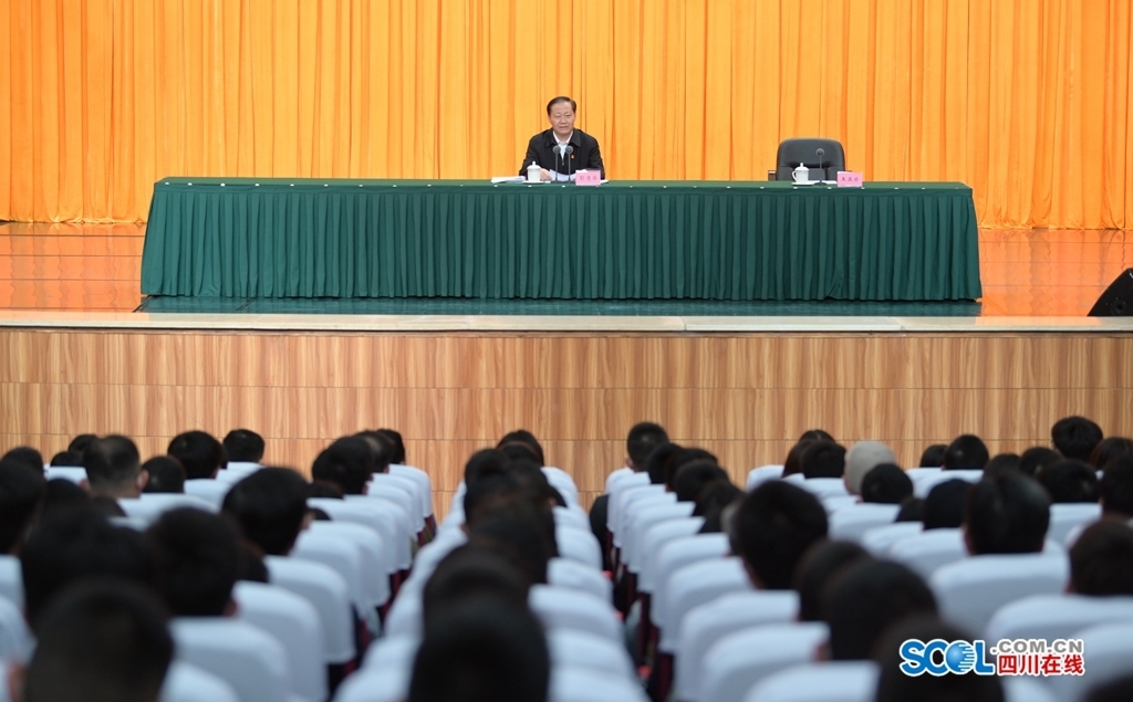 电子科技大学党委书记王亚非主持报告会。省领导王雁飞、田向利、甘霖、邓勇、王一宏、于立军、罗强,省直有关部门负责同志,电子科技大学领导班子成员和师生代表等参加。