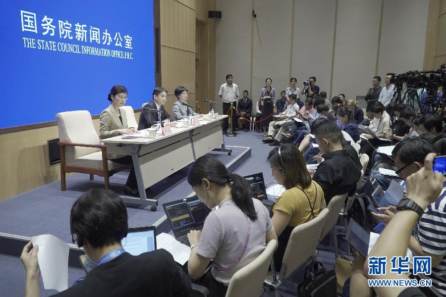 8月6日,国务院新闻办公室在北京举行吹风会,邀请国务院港澳办新闻发言人杨光、徐露颖介绍对香港当前事态的看法,并答记者问。 新华社记者 才扬 摄
