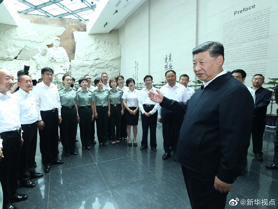 习近平总书记20日上午来到甘肃省张掖市高台县,瞻仰中国工农红军西路军纪念碑和阵亡烈士公墓,向西路军革命先烈敬献花篮,并参观了中国工农红军西路军纪念馆。(文字记者:张晓松、朱基钗 摄影记者:鞠鹏、谢环驰)