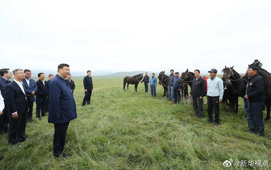 正在甘肃省考察的习近平总书记20日下午抵达张掖市山丹县,前往山丹培黎学校和山丹马场考察调研,了解当地职业教育培训和祁连山生态环境修复保护等情况。(文字记者:张晓松、朱基钗 摄影记者:鞠鹏、谢环驰)