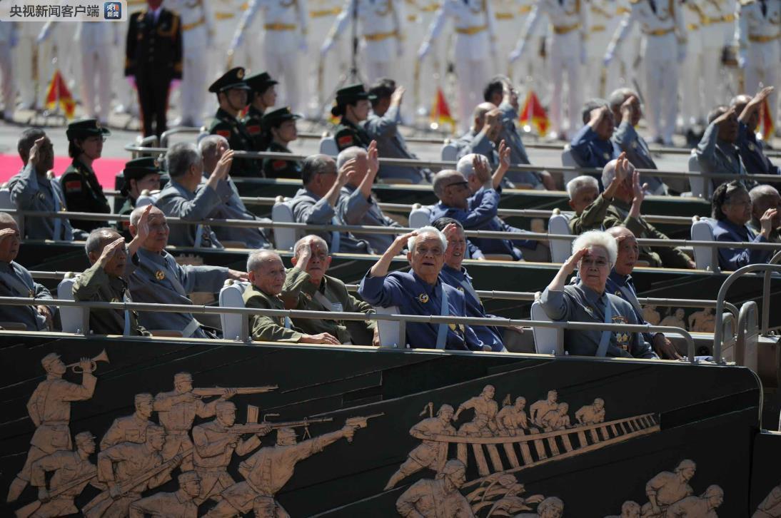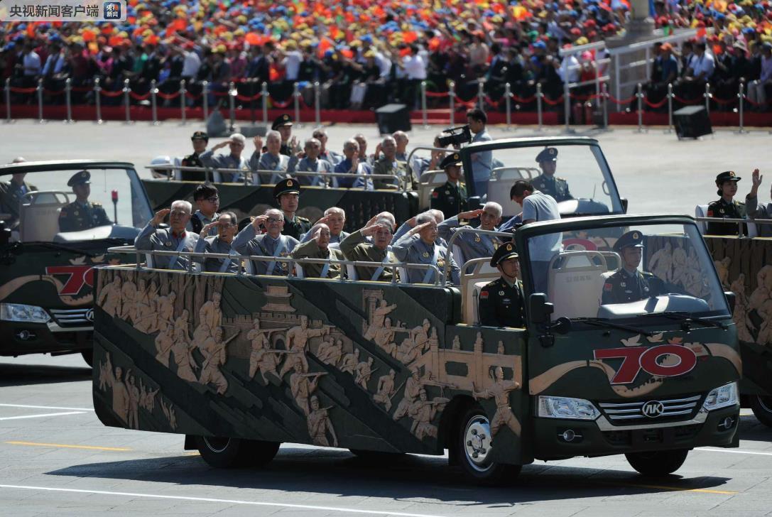 △2015年9月3日,中国人民抗日战争暨世界反法西斯战争胜利70周年纪念大会在北京举行。由300余名抗战老兵、英烈子女、抗战支前模范组成的2个乘车方队,行进在受阅方队最前面,接受祖国和人民的致敬。(资料图)