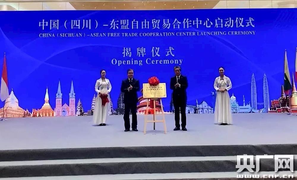 10月18日,中国(四川)—东盟自由贸易合作中心在成都天府新城会议中心正式揭牌(图片来源:央广网)