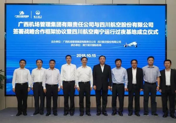 川航与广西机场集团签署战略合作框架协议并举行川航南宁运行过夜基地授牌仪式(图片来源:四川新闻网)