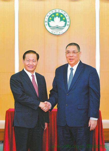 11月9日,省委书记彭清华在澳门会见澳门特别行政区行政长官崔世安(四川日报记者 欧阳杰 摄,图片来源:四川日报)