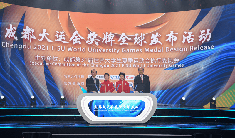 3月18日晚,成都第31届世界大学生夏季运动会奖牌全球发布活动在东安湖体育公园举行。成都大运会组委会主席、国家体育总局局长苟仲文,成都大运会组委会执行主席、省委副书记、省长黄强出席并共同发布成都大运会奖牌(图片来源:四川省人民政府网)