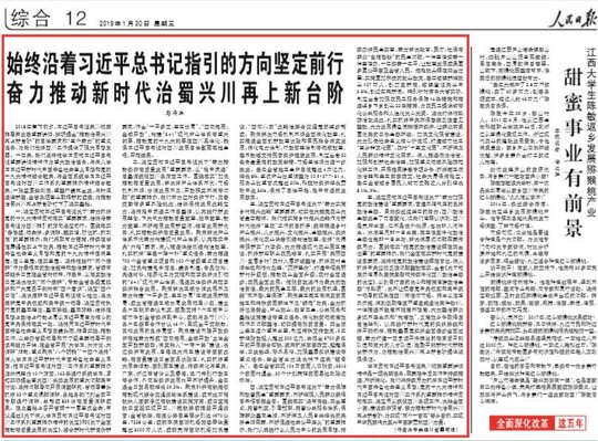 1月30日,省委书记彭清华在《人民日报》发表署名文章:《始终沿着习近平总书记指引的方向坚定前行 奋力推动新时代治蜀兴川再上新台阶》,全文转载如下:
