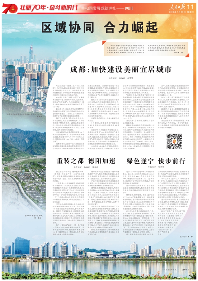 区域协同 合力崛起——2019年7月30日人民日报6个整版《壮丽70年·奋斗新时代·共和国发展成就巡礼——四川》