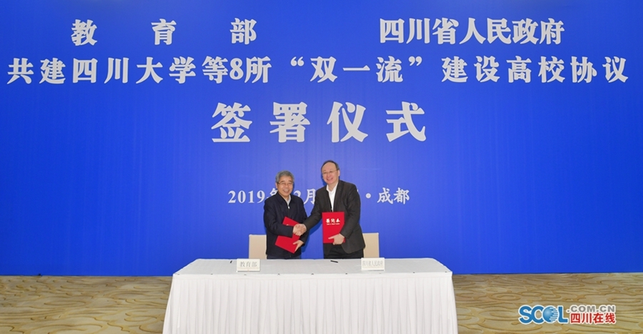 协议签署仪式上,副省长杨兴平介绍部省共建有关情况。陈宝生与尹力分别代表双方签署共建协议。根据协议,教育部和四川省将共同推进四川大学、电子科技大学世界一流大学建设,共同推进西南交通大学、西南财经大学、四川农业大学、成都理工大学、西南石油大学、成都中医药大学世界一流学科建设。进一步聚集优质资源、优化条件保障,合力为学校争创一流提供优良的政策环境和发展空间,促进学校内涵式发展,推动学校在人才培养、科学研究、社会服务、文化传承创新、国际合作交流等方面得到显著提高,在造就学术领军人物和集聚创新团队、培养拔尖创新人才、产生国际领先的科技成果、创新管理体制机制等方面取得新的突破,更好融入四川高质量发展,支撑国家创新驱动发展战略,在建设创新型国家和高等教育强国中发挥更大作用。