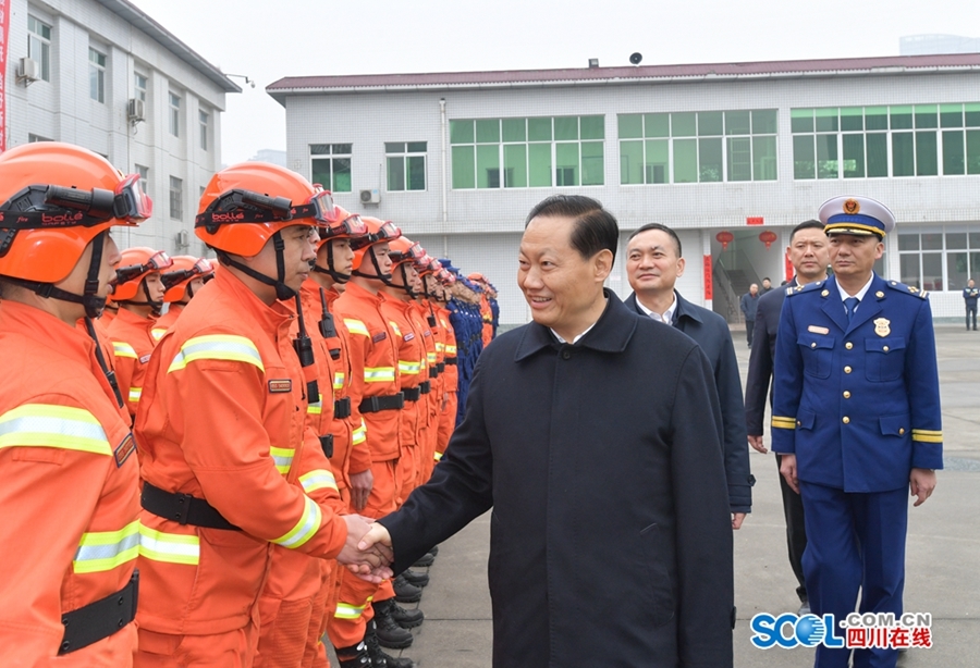 1月23日,省委书记、省人大常委会主任彭清华到四川省森林消防总队看望慰问战备值守的森林消防指战员。