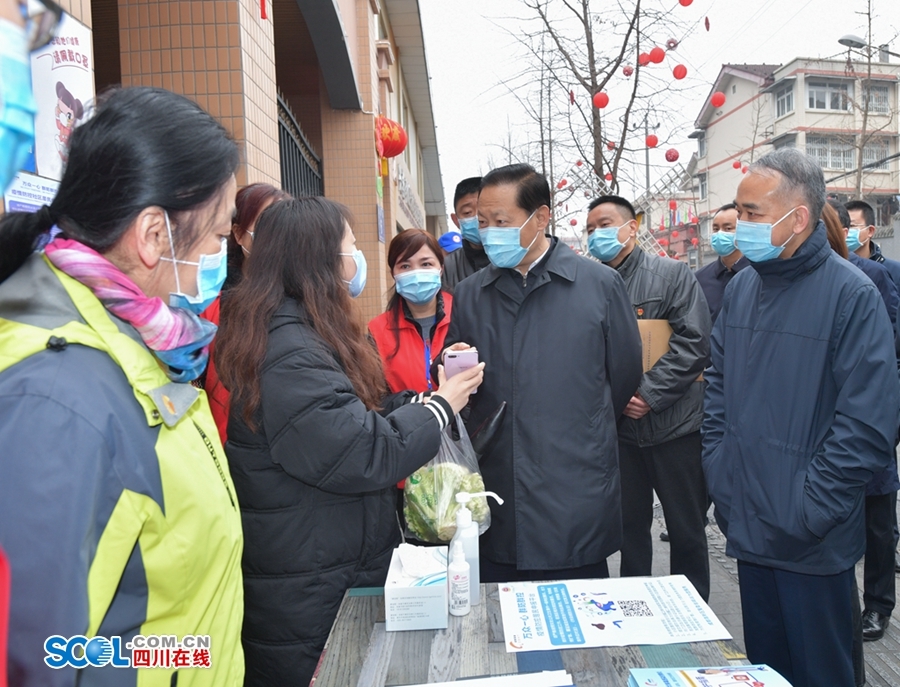 2月12日,彭清华书记到成都高新区肖家河街道兴蓉社区,实地了解居民走访排查和院落管理情况。在兴蓉街6号院入口,彭清华观看一位居民通过电子出入证功能用手机扫描二维码、检测体温后进门的过程。