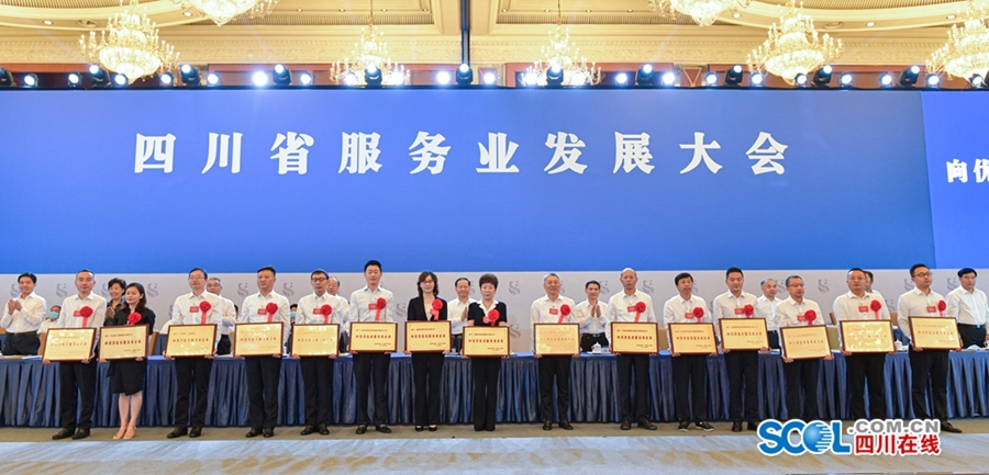 9时30分许,随着播放四川服务业发展专题片《勇立潮头开新篇》,大会正式拉开帷幕。省委常委、副省长罗文宣读有关表彰表扬的决定和通报。在热烈的掌声中,彭清华、柯尊平、王炳南、邓小刚等向受表彰优秀服务业企业代表授牌。中国物流与采购联合会、成都市、完美世界控股集团公司、四川新派餐饮管理公司负责人作交流发言。
