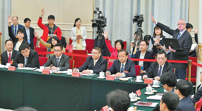 10月19日上午,四川省代表团在人民大会堂四川厅举行全体会议,继续讨论习近平总书记代表第十八届中央委员会所作的报告。来自82家中外媒体的102名记者旁听四川省代表团的讨论。(记者 毛漫丁 田为)