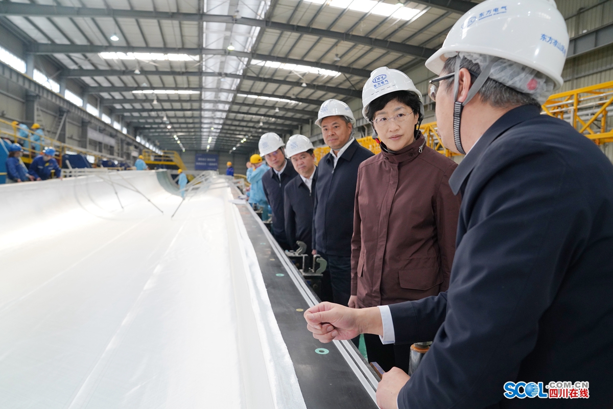 12月6日,省委副书记、省长施小琳在德昌县特色产业园区东方电气风电(凉山)有限公司,调研风电新能源装备制造业发展情况。