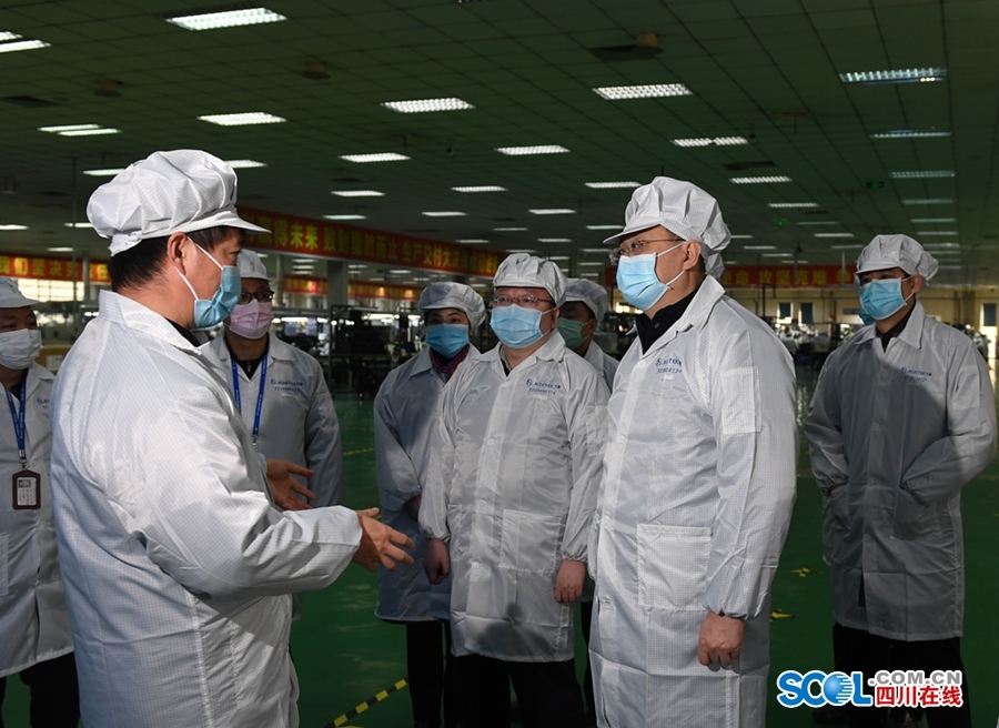 在四川九洲电器集团,尹力详细了解企业落实疫情防控措施和复工复产情况。