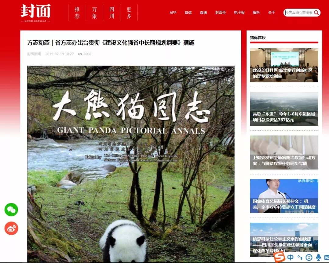 2019.7.19日封面新闻报道:省方志办出台贯彻《建设文化强省中长期规划纲要》措施