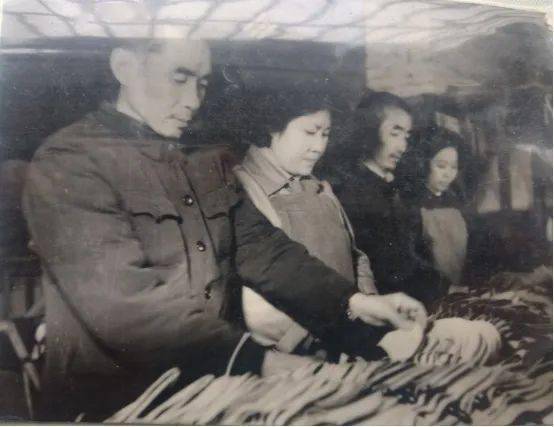 生前是制鞋厂厂长的父亲(左一)在车间参加劳动