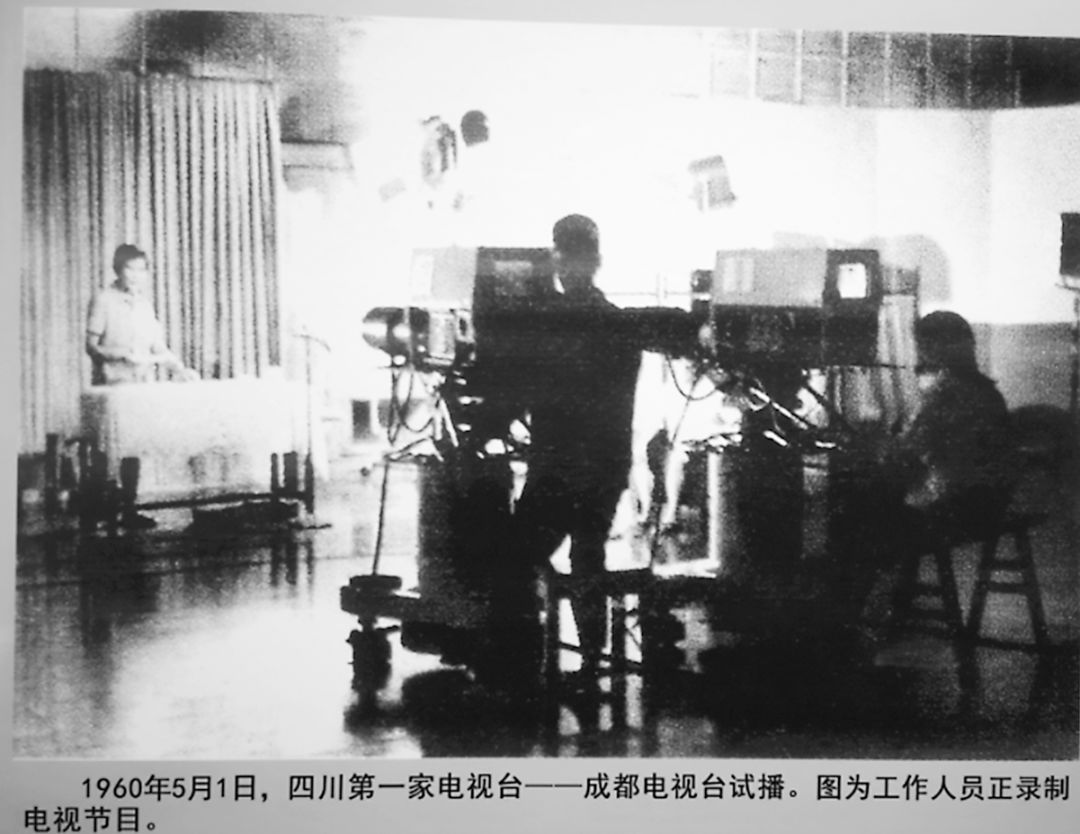 1960年5月1日,成都电视台(四川电视台前身)试播成功。图为工作人员在录制电视节目(图片来源:《20世纪四川全纪录》)