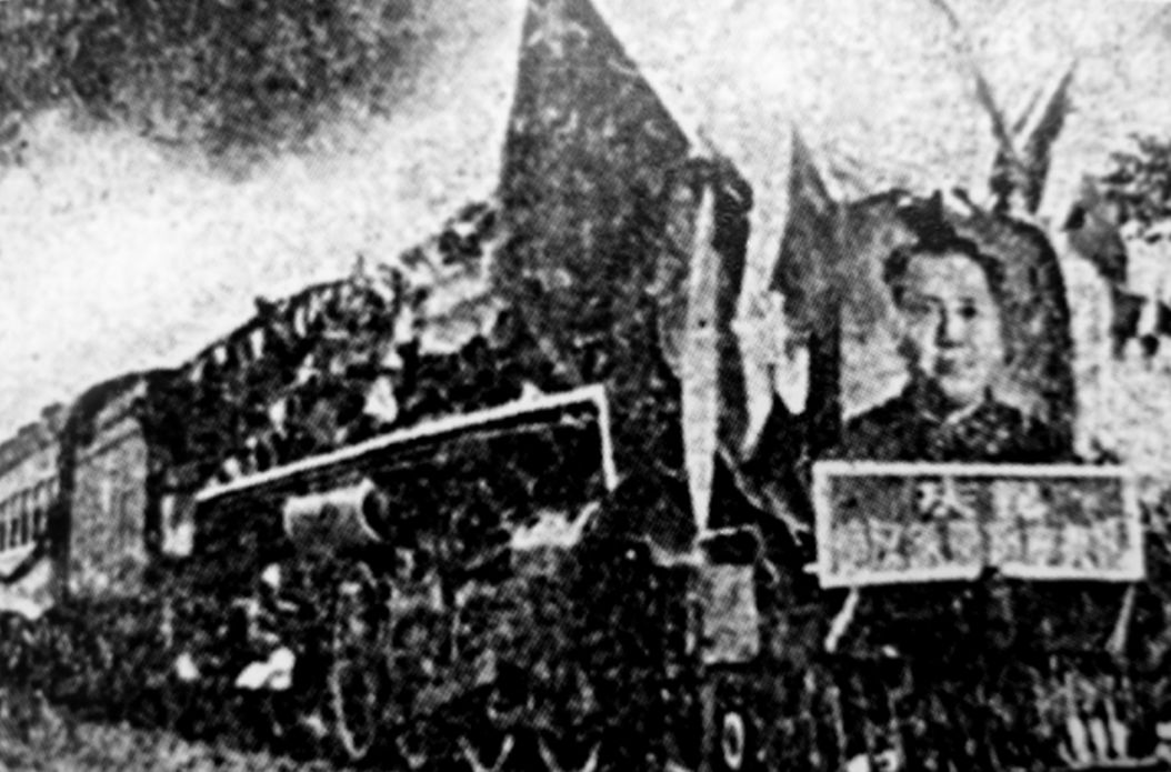 1960年3月12日,德汉(德阳—汉旺)铁路通车。图为德汉线开出的第一列货车(图片来源:《20世纪四川全纪录》)