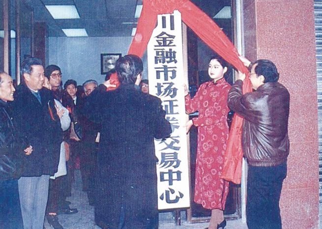 1991年12月26日,四川金融市场证券交易中心在成都挂牌开业(人行成都分行 供图)