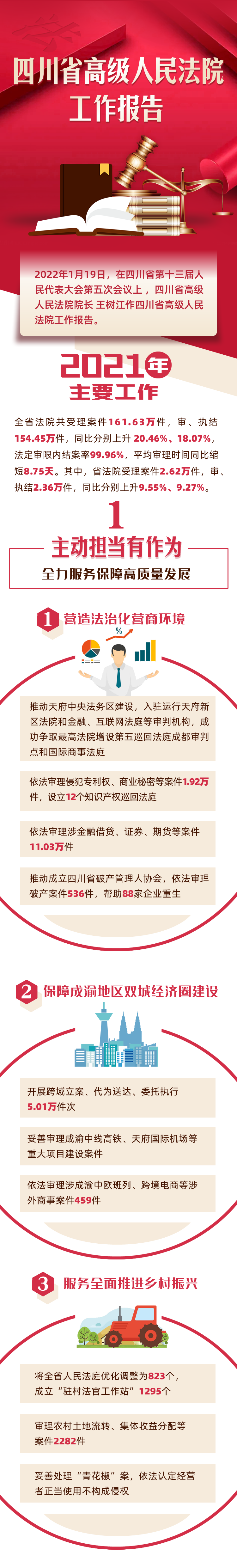1月19日上午,四川省十三届人大五次会议举行第二次全体会议。四川省高级人民法院院长王树江代表四川省高级人民法院向大会报告工作。